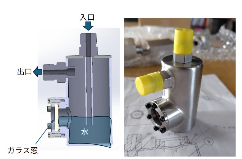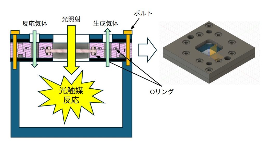 金属蓋の中央にガラスを配置し、光が通るようにした蓋です。Oリングを組み合わせることで、反応系は密封された状態となります。