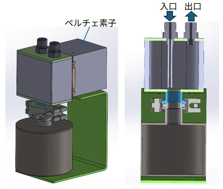 ペルチェ素子により容器を冷やすことで、容器を通ったガスの水分をトラップします。検出器の故障防止などに役立ちます。